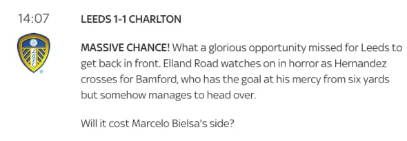 Leeds fans were keeping an eye on the ‘live commentary’ on the Sky Sports blog, with one saying “Bloody knew it” when Bonne’s goal was announced.