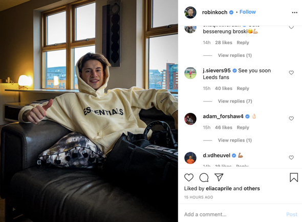 He responded to a thread posted by injured Leeds star Robin Koch, who delivered a message to Leeds fans.