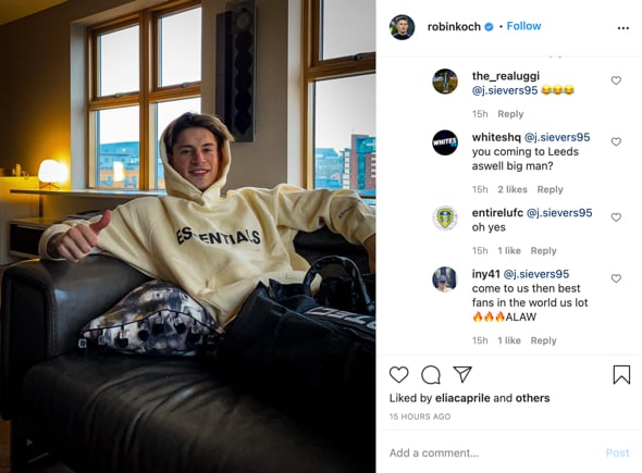25-year-old goalkeeper Jan-Ole Sievers has got some supporters talking after dropping a message on Instagram saying, “See you soon Leeds fans.”