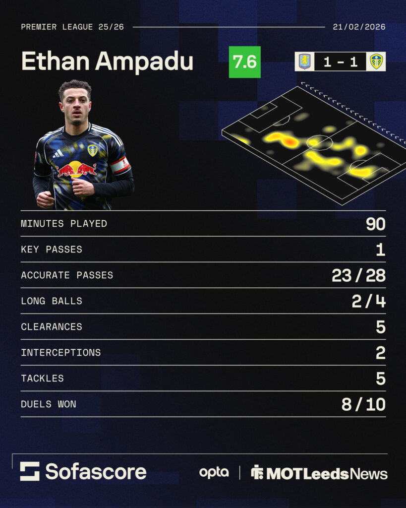 His qualities were plain to see on Saturday in the 1-1 draw at Aston Villa, as this Sofascore graphic illustrates, and it is clear that Ampadu is finally settled after years of searching for stability.