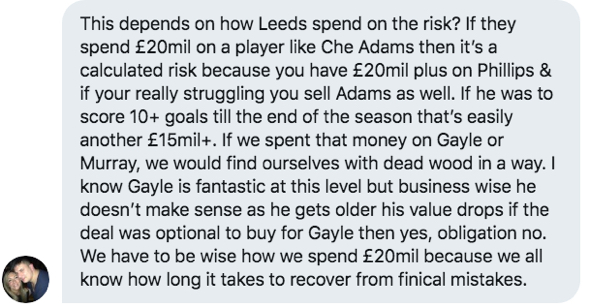 The majority of our Super Fans want Leeds to take the gamble, pointing out that we’ve got a Kalvin Phillips safety net if things go wrong.